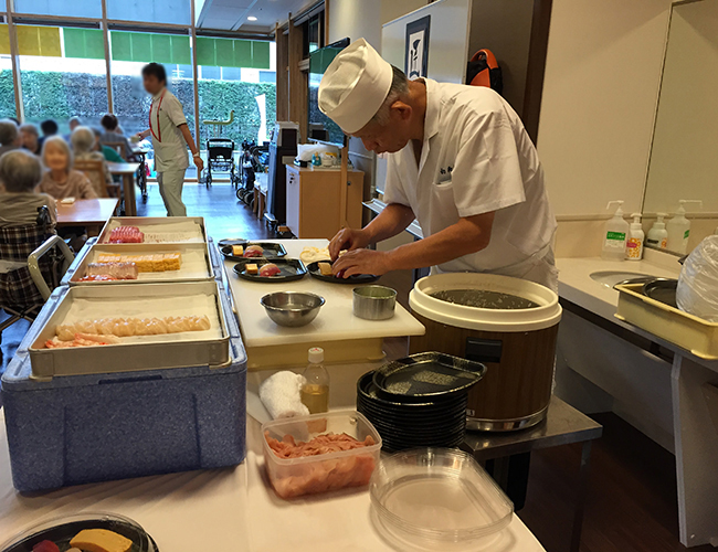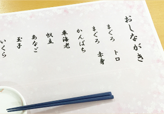 普段、なかなかお寿司屋さんに出向く事が難しくなった、ご年配の方や、お身体が不自由な方などの為に、初寿司ではリーズナブルに出張させていただいております。